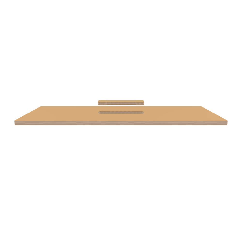 Rechteckiger Linoleum-Kabeldeckel eingelassen in Linoleum-Tischplatte.