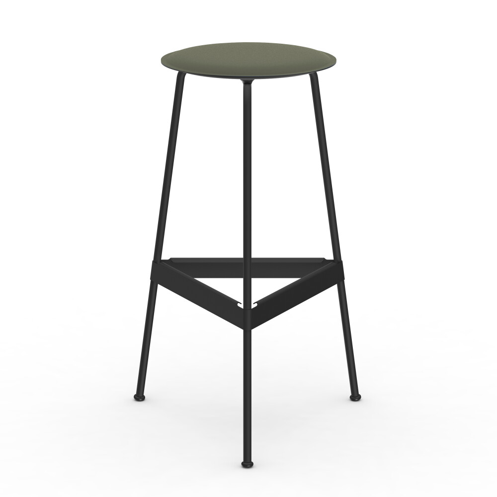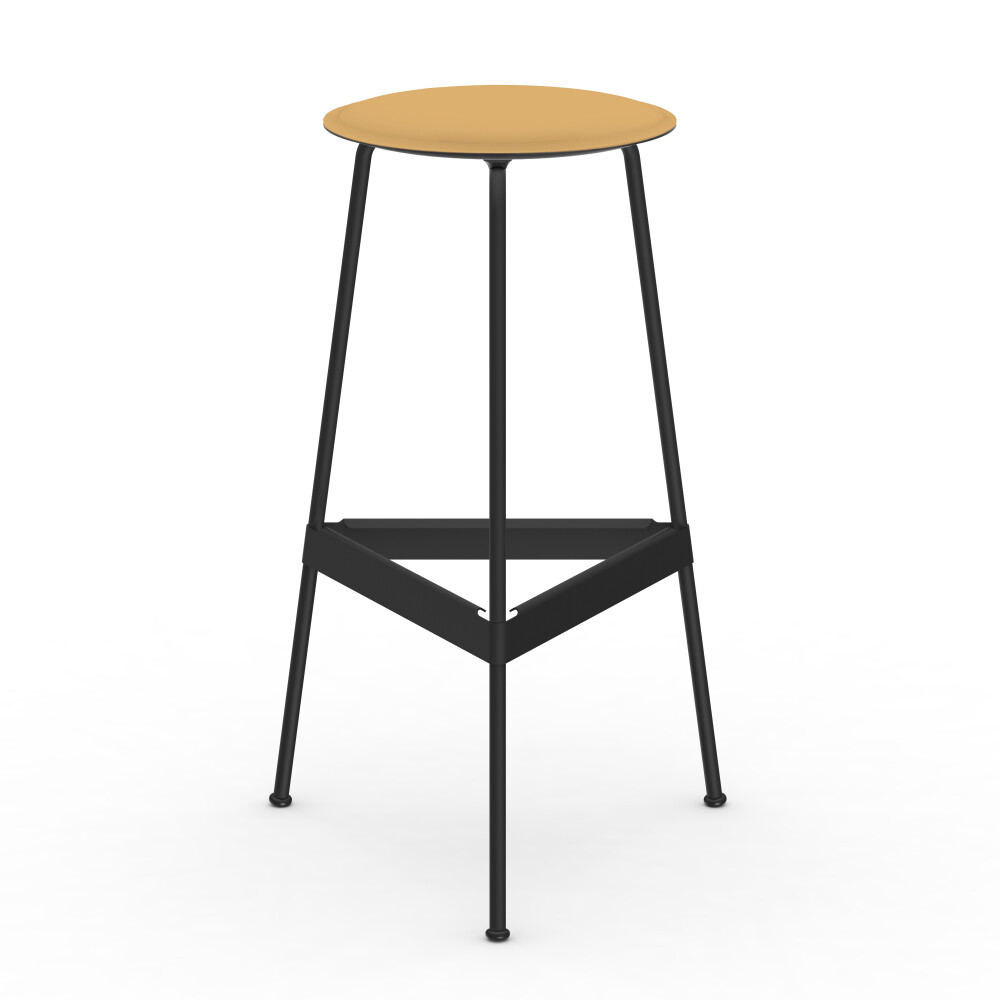 Der dreibeinige RAVIOLI Barhocker ist in zwei Höhen erhältlich und hat für noch mehr Sitzkomfort eine Fußstütze. Die 3D-geformte Linoleumsitzfläche können Sie in allen Farben der umfangreichen Faust-Farbpalette konfigurieren, wodurch sich der Barhocker ganz natürlich in Ihr Interieur einfügt und eine warme Sitzfläche mit angenehmer Haptik bietet. Das schlanke Stahlgestell des Barhockers ist in zwei Farben erhältlich. Die Kollektion umfasst auch einen praktischen RAVIOLI Hocker.