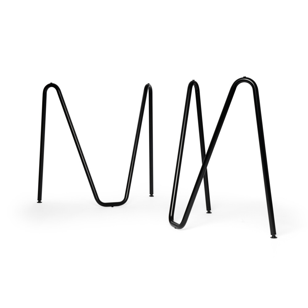 Sinus Tischbock in Größe M/L aus pulverbeschichtetem Stahl, gezeigt in Tiefschwarz (RAL 9005).