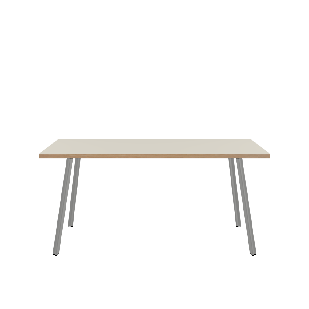 BEAM Table - Shape Square - Length 160.00 cm - Width 80.00 cm - Radius 0.30 cm - Thickness 3 cm - Surface Linoleum, 4176 Mushroom - Core Laminboard - Edge Wood, Larch - Profile Edge 90° / BEAM Table Legs - Material and Colour Aluminium, matt anodised - Profile strength Small - Height 71 cm - Set 4 Legs